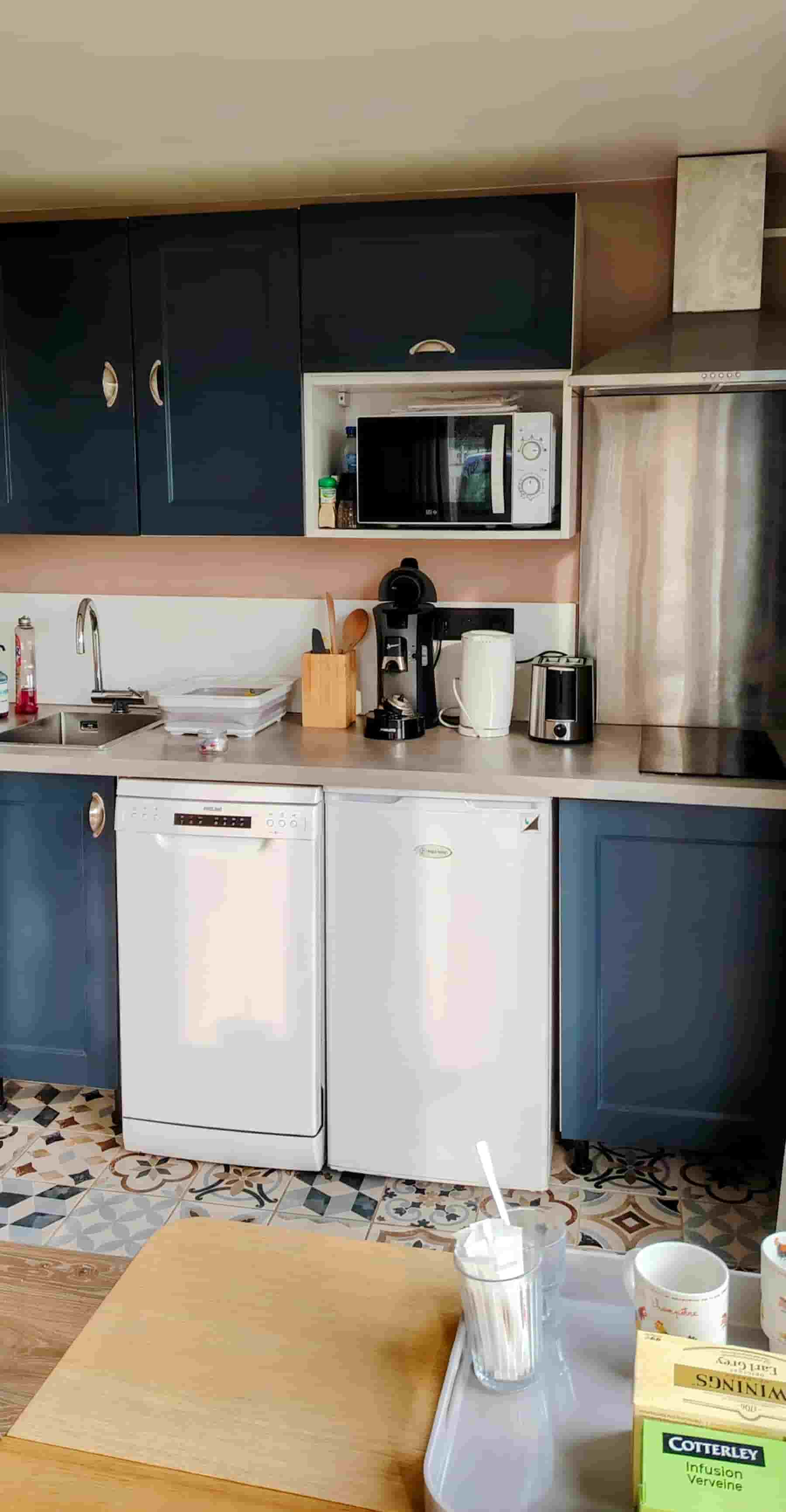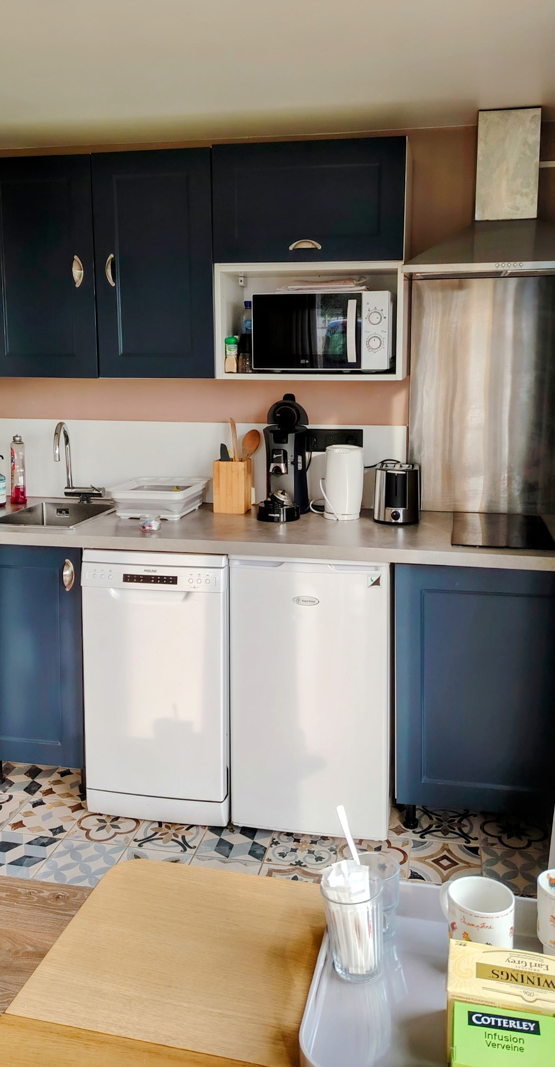 Le logement de 35m2 pour 3 personnes au maximum, de plain pied, se compose d'une entrée, d'une salle d'eau, d'une chambre avec des lits superposés de 140 et de 90, d'une pièce à vivre et d'une cuisine. Vous avez accès au terrain ainsi qu'à l'espace plancha.